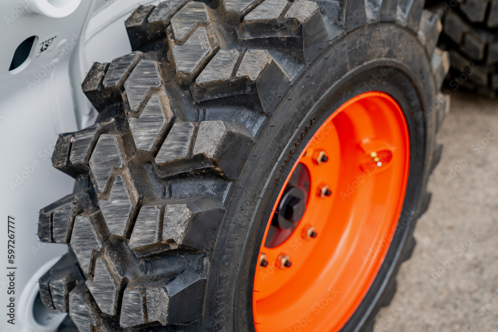 Construction loader big black rubber tire grip with orange disks heavy duty