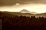 Mountain top covered with young snow and illuminated by the sun on a sunny day. Mountain landscape.