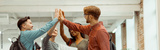 Diverse students celebrating together in the classroom