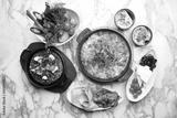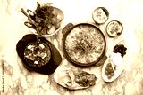 Traditional turkish breakfast menu with shakshuka in frying pan