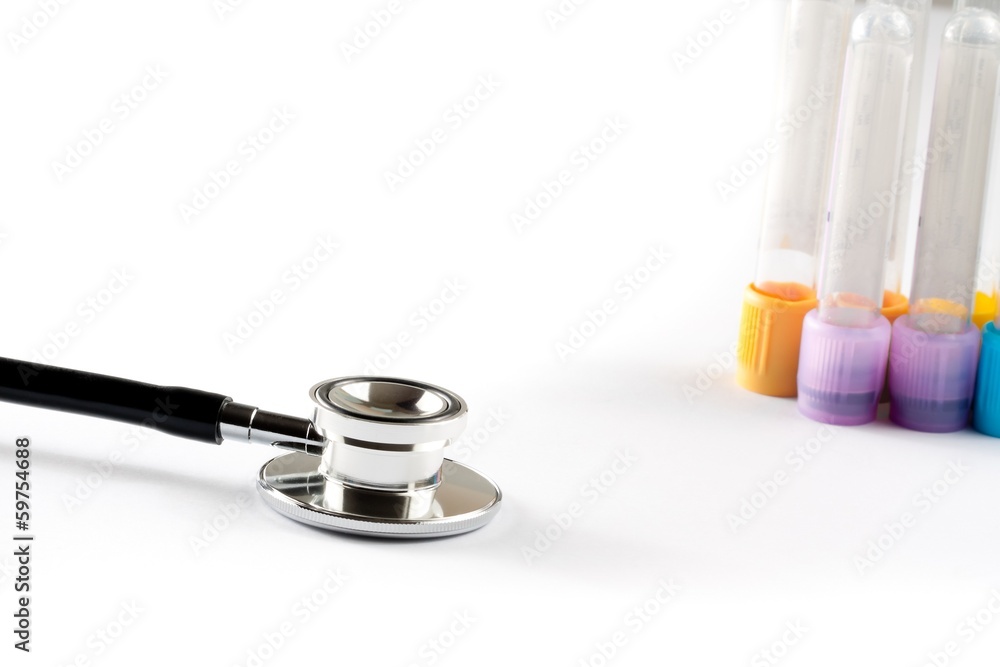 test tubes in laboratory near stethoscope