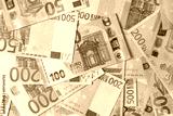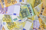 Euro banknotes,various denomination. table top view. Close-up
