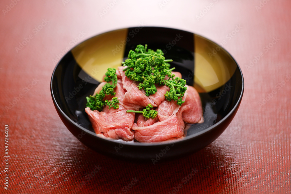 shabu-shabu of Sansho (Japanese pepper ) flower and beef, Japanese cuisine