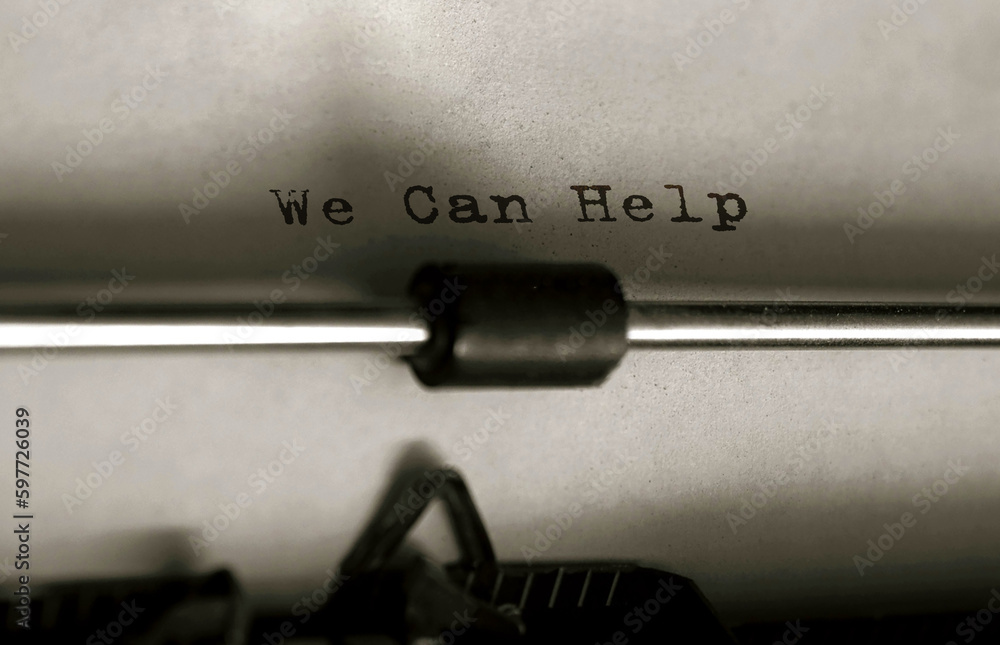 Text We Can Help typed on retro typewriter