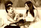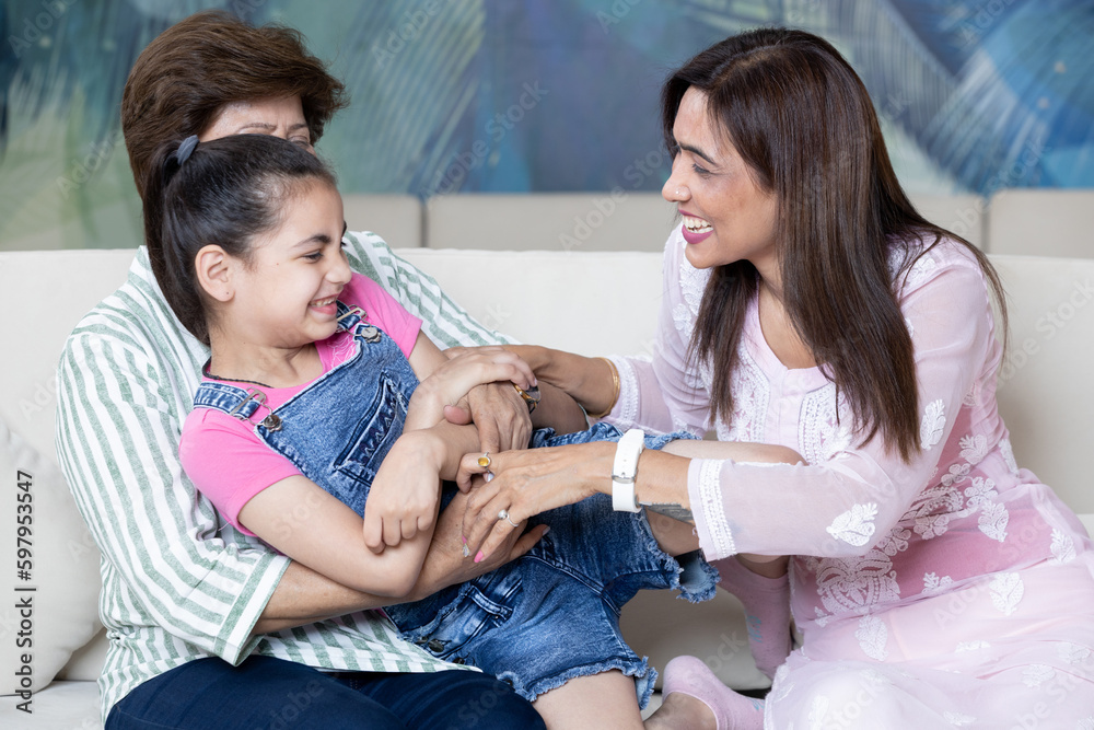 Indian multi generational family daughter and granddaughter cheerfully enjoying together