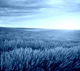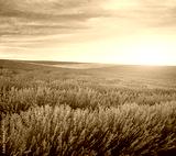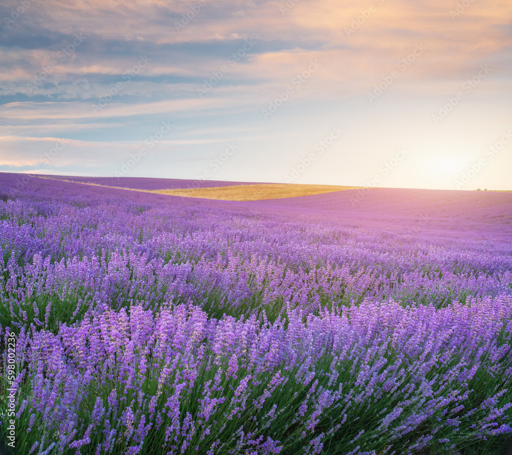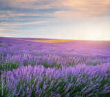 Meadow of lavender at sunset.