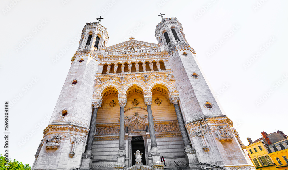 The Basilica of Our Lady of Fourvière, or La Basilique Notre Dame de Fourvière in Lyon, France