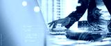 Data science, digital technology concept. Computer science engineer programming on laptop at smart office, data exchange, system control with Ai, Business and Artificial intelligence
