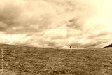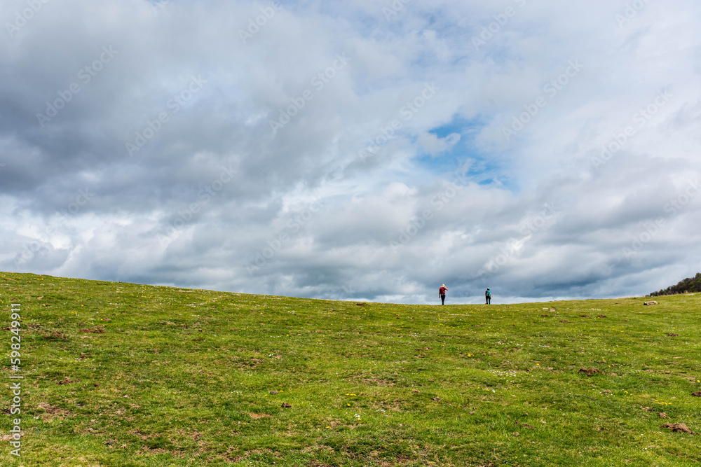 Mature couple hiking in a magnificent landscape of the Larrau under the storm