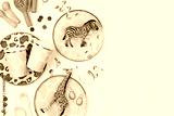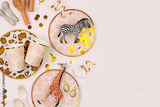 Safari animals birthday party decorations and props. Cute paper party plates and cups for themed kids party. Set of holiday disposable tableware for party or picnic.