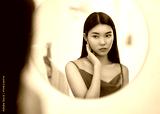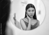 woman looking at mirror