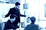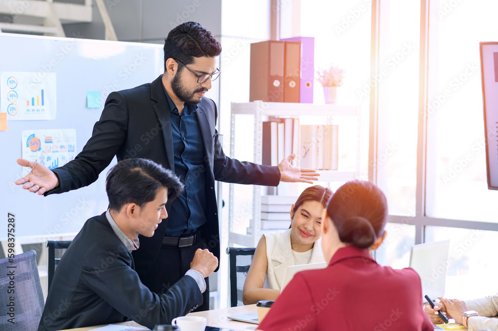 Business people group meeting with laptops in the modern office. Successful business professionals work together with colleagues while analytical report.