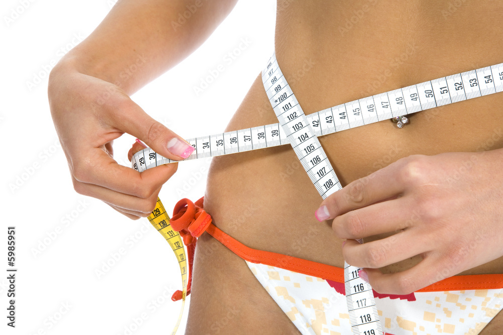 beautiful girl with meter on isolated background