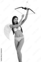Sexual Kupedon with bow on insulated background