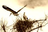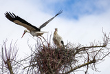 White Stork, Ciconia ciconia on the nest in Oettingen, Swabia, Bavaria, Germany, Europe