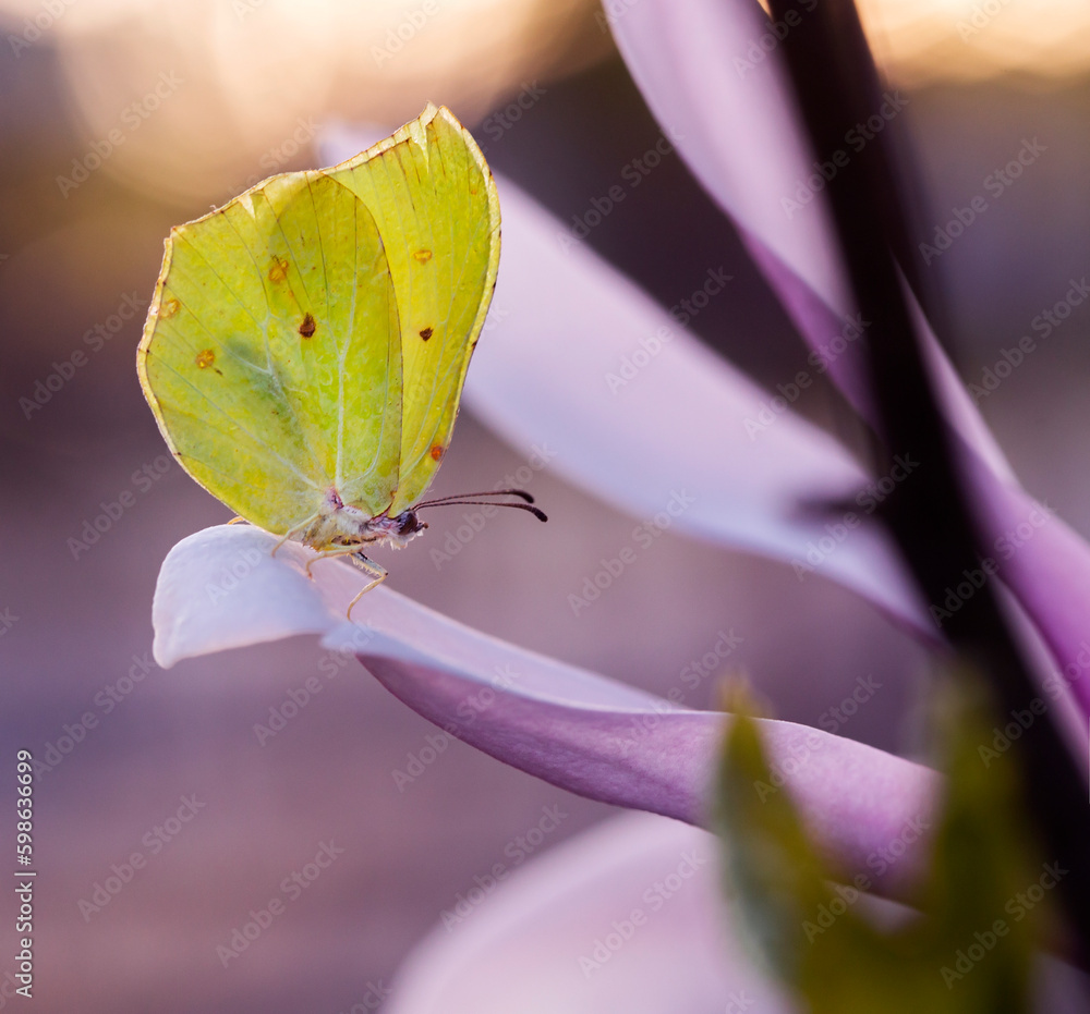 Motyl Latolistek Cytrynek na kwiatach Magnolii