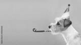 Cute dog celebrating at a birthday party