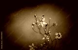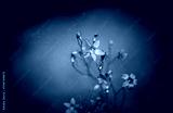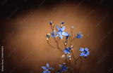 Blue bell flower buds on an orange background. Purple forest flowers. Macrophotography of a forest bell.