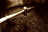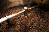 fresh coffee beans roasted spinning cover professional machine close up to soft focus slow shutter speed because want to make motion blur of coffee beans detail concept,
