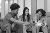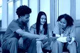 Group of medical student using tablet searching information study and talking in hospital university. education and learning medical concept.