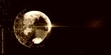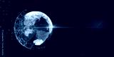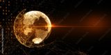 Abstract glowing polygonal globe on blurry dark wide background with mock up place. Global technology and metaverse concept. 3D Rendering.