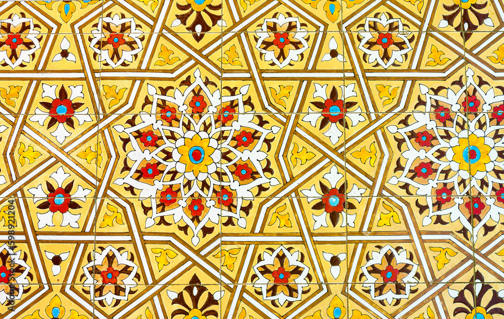 Geometric traditional Islamic ornament. Fragment of a ceramic mosaic.