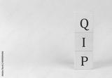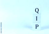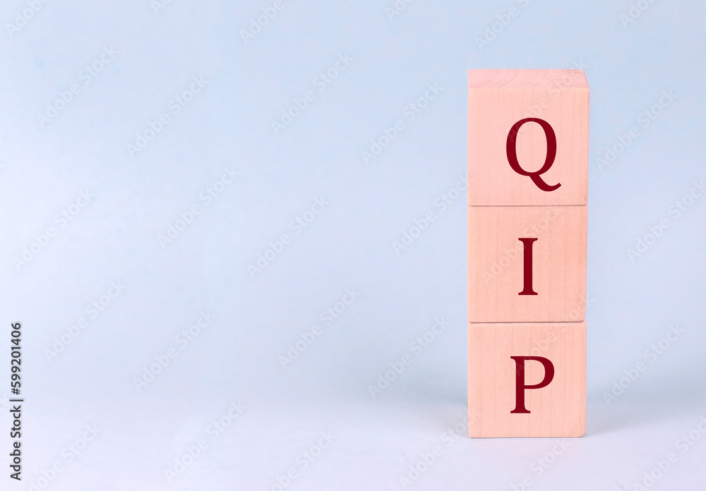QIP on wooden cubes on a blue background