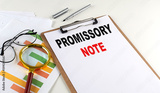 PROMISSORY NOTE text on clipboard on white background, business concept