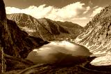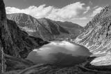 Mountain landscape in holiday sunny day. Beautiful lake in mountains. Black Pond(Czarny Staw) under Rysy Peak, lake is the most popular place in High Tatra Mountains, Poland.