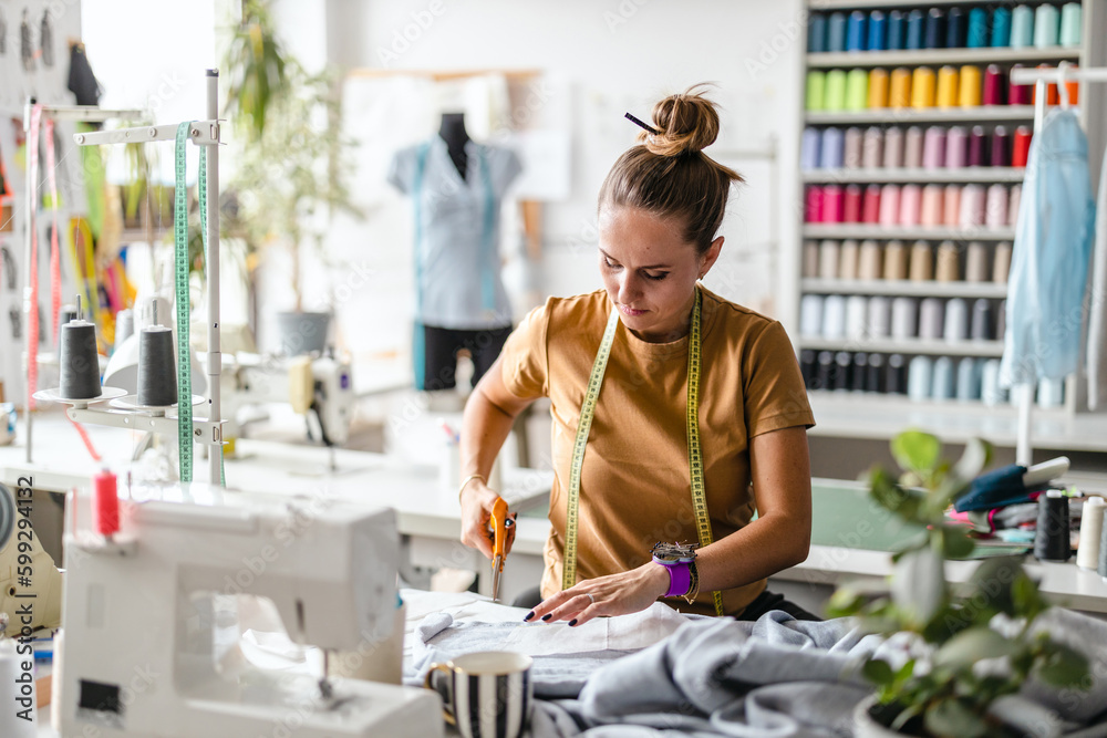 Young fashion designer working at her workplace