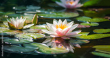 Beautiful pink lotus flower with a green leaf in the pond. A pink lotus water lily blooming on the water, magical spring,summer dreamy background