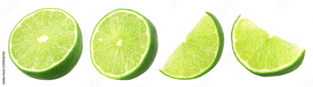 Fresh lime slice and half isolated, transparent png, collection, PNG format, cut out