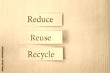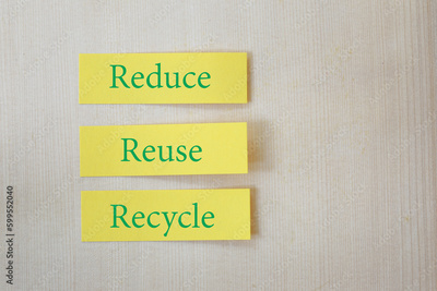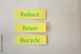 Green Text on yellow paper note with the words of Reduce, Reuse and Recycle for design in your work concept 3R in Reducing the amount of waste.