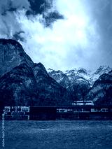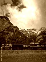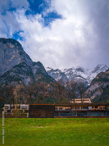 Alps Mountains Northern Range landscape at sunrise, snow-covered peak skyline and cloudscape in Innsbruck, Tyrol, western Austria