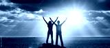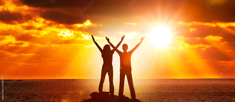 Zwei Personen im Gegenlicht bei Sonnuntergang