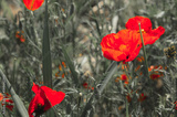 Red poppies in a poppy field.Selective focus.