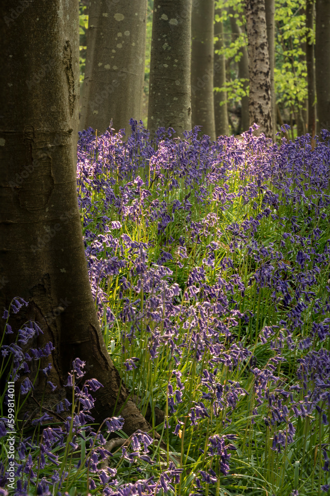 Lovely Spring bluebell forest giving calm peaceful feeling in English countryside
