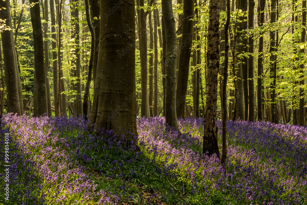 Lovely Spring bluebell forest giving calm peaceful feeling in English countryside