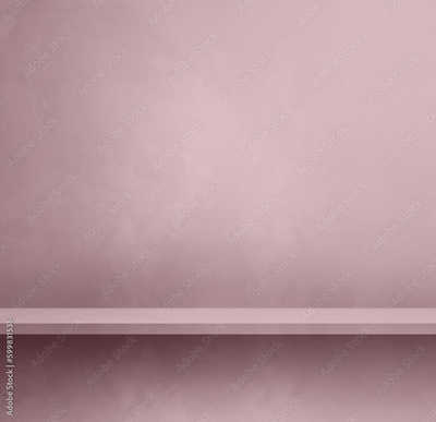 Empty shelf on a light lilac pink concrete wall. Background template. Square mockup