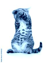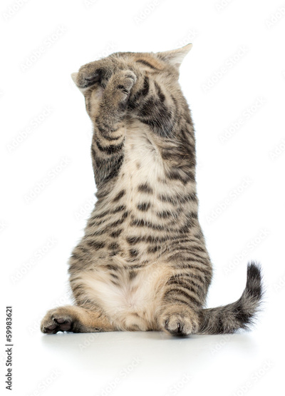 frightened standing little brittish kitten with closed face and