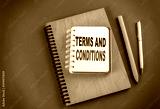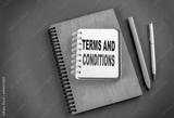 TERMS AND CONDITIONS text on notebook with pen and pencil on grey background