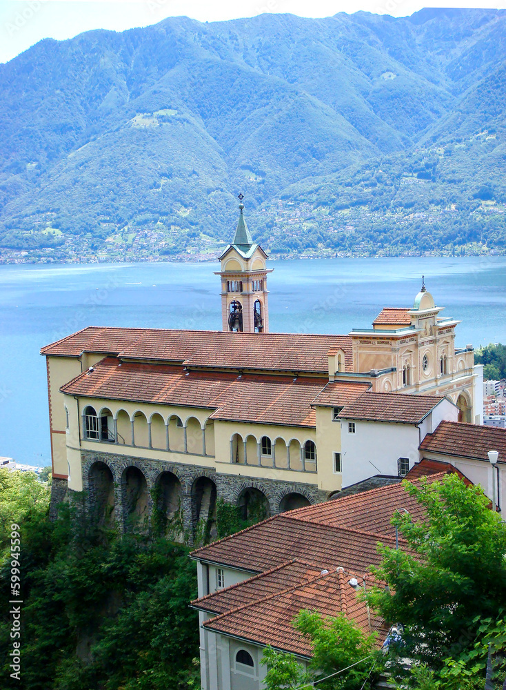 View of church of Madonna of the Rock on a summer day. Locarno. Switzerland.