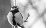Tit on a tree branch close-up. Tit in summer (scientific name: Cyanistes Caeruleus).