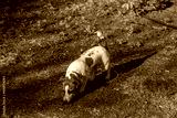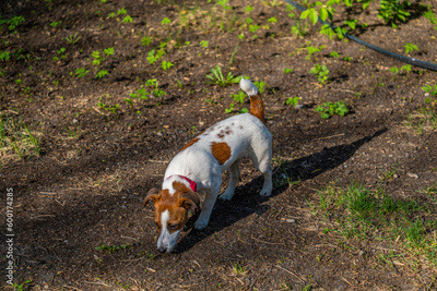 Jack Russell Terrier dog on the street in the park.