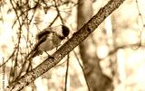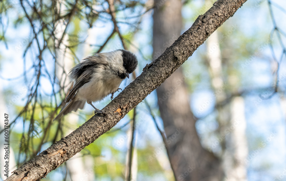 The bird is a black-headed nut on a branch on a spring day.marsh tit (Poecile palustris) on a branch