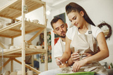 Young couple at artwork in pottery