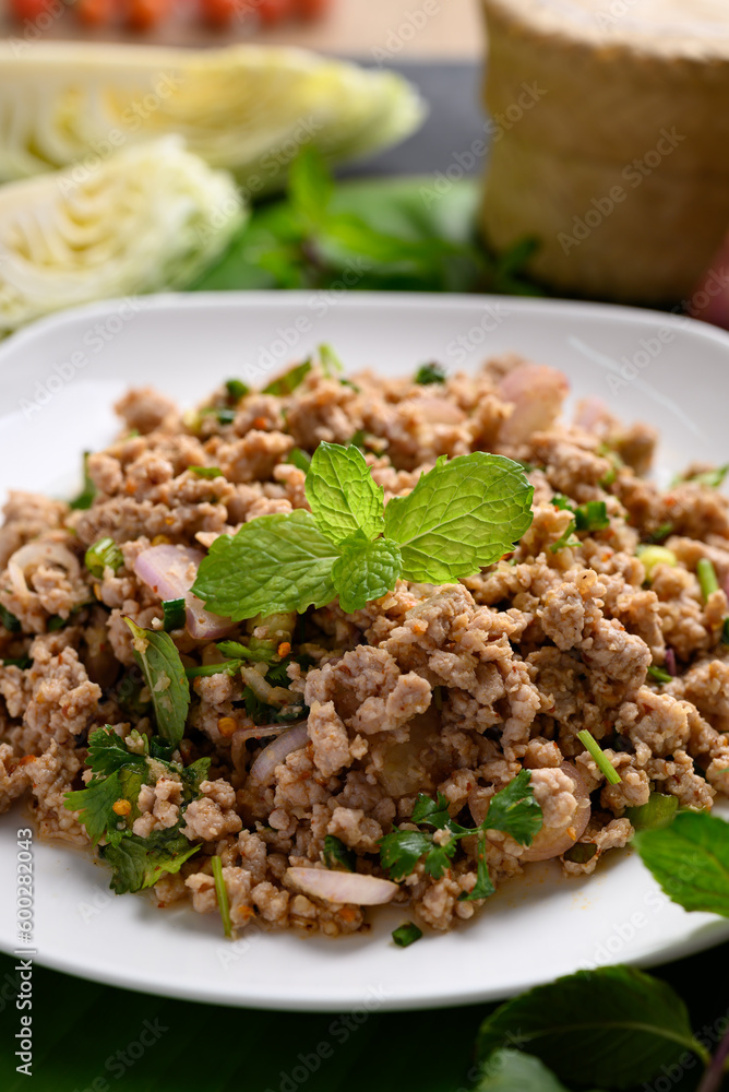 Local Thai food, Spicy minced pork salad (Larb Moo)