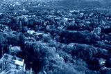 City in Summer with sunset light effect backgrounds, city in green mountains