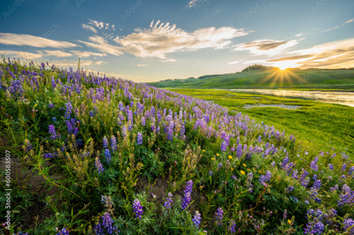 Hillside Covered with Purple Lupine Glows in the last light of afternoon
