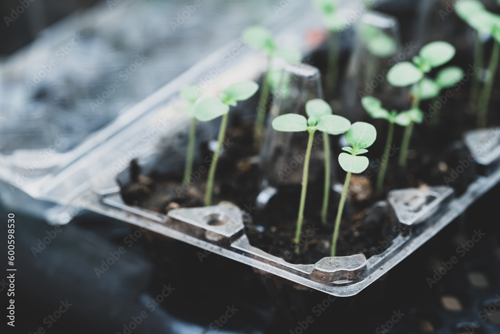 Reusable DIY plastic egg panel for planting small vegetables, Sustainability concept at home